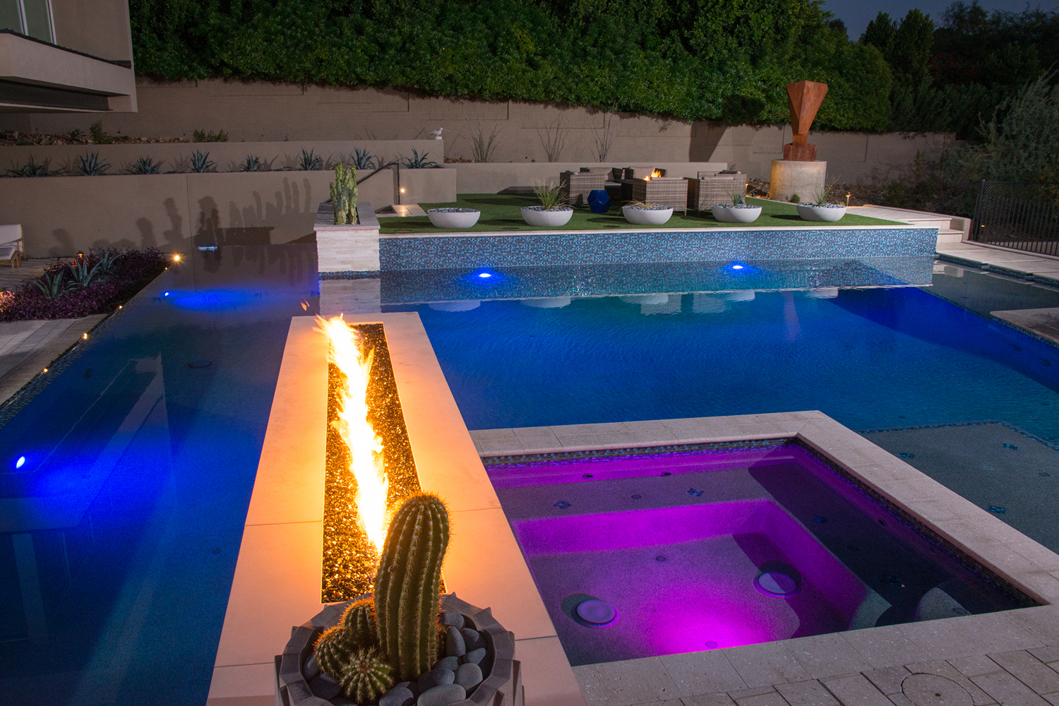 Our features portfolio shows how water, fire, and lighting create ambiance and functional luxury.