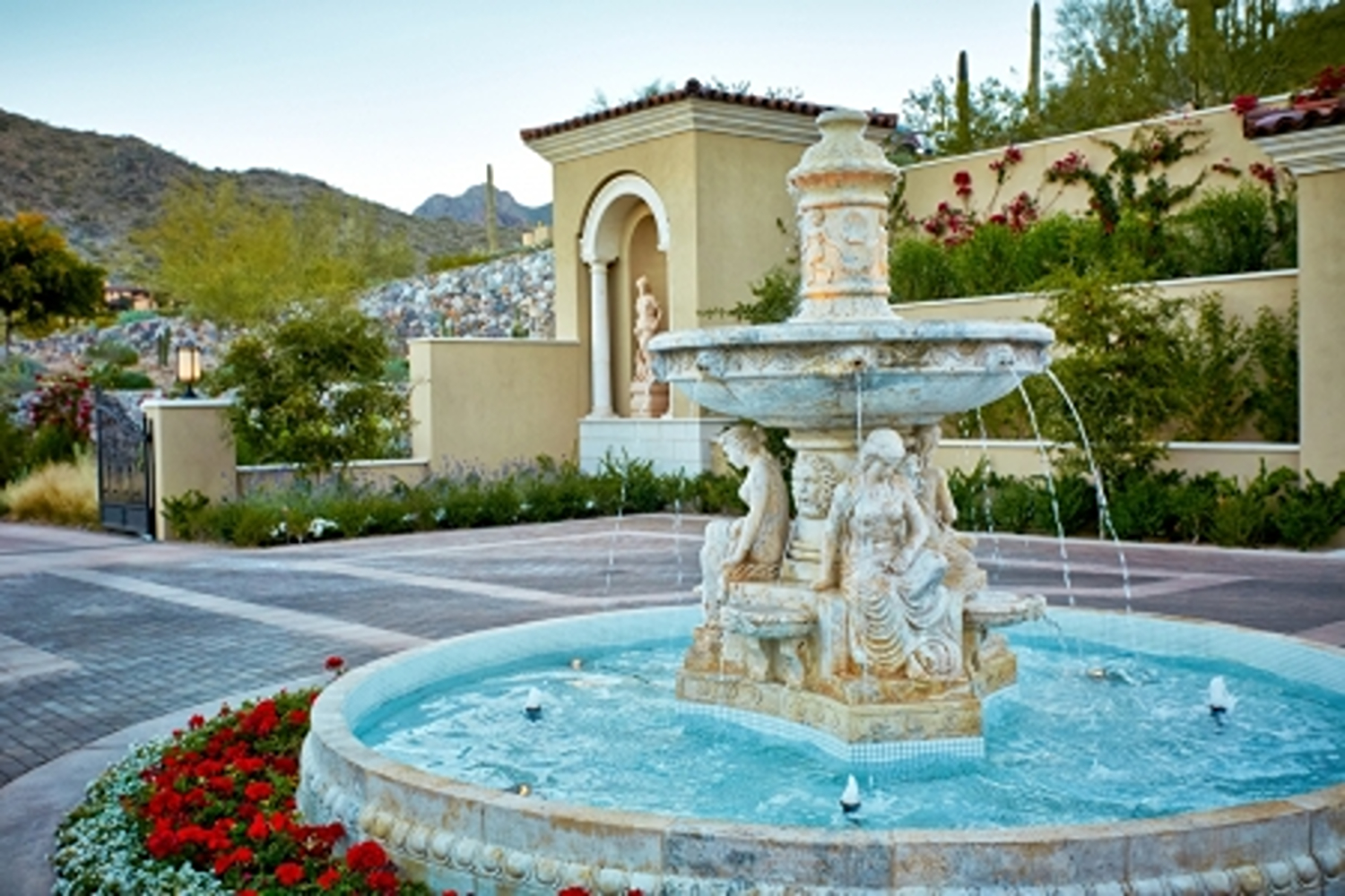 Projects featured: Silverleaf perimeter overflow masterpiece, Paradise Valley wet-edge with fire feature, North Scottsdale all-sides cascade, Arcadia contemporary wet-edge.