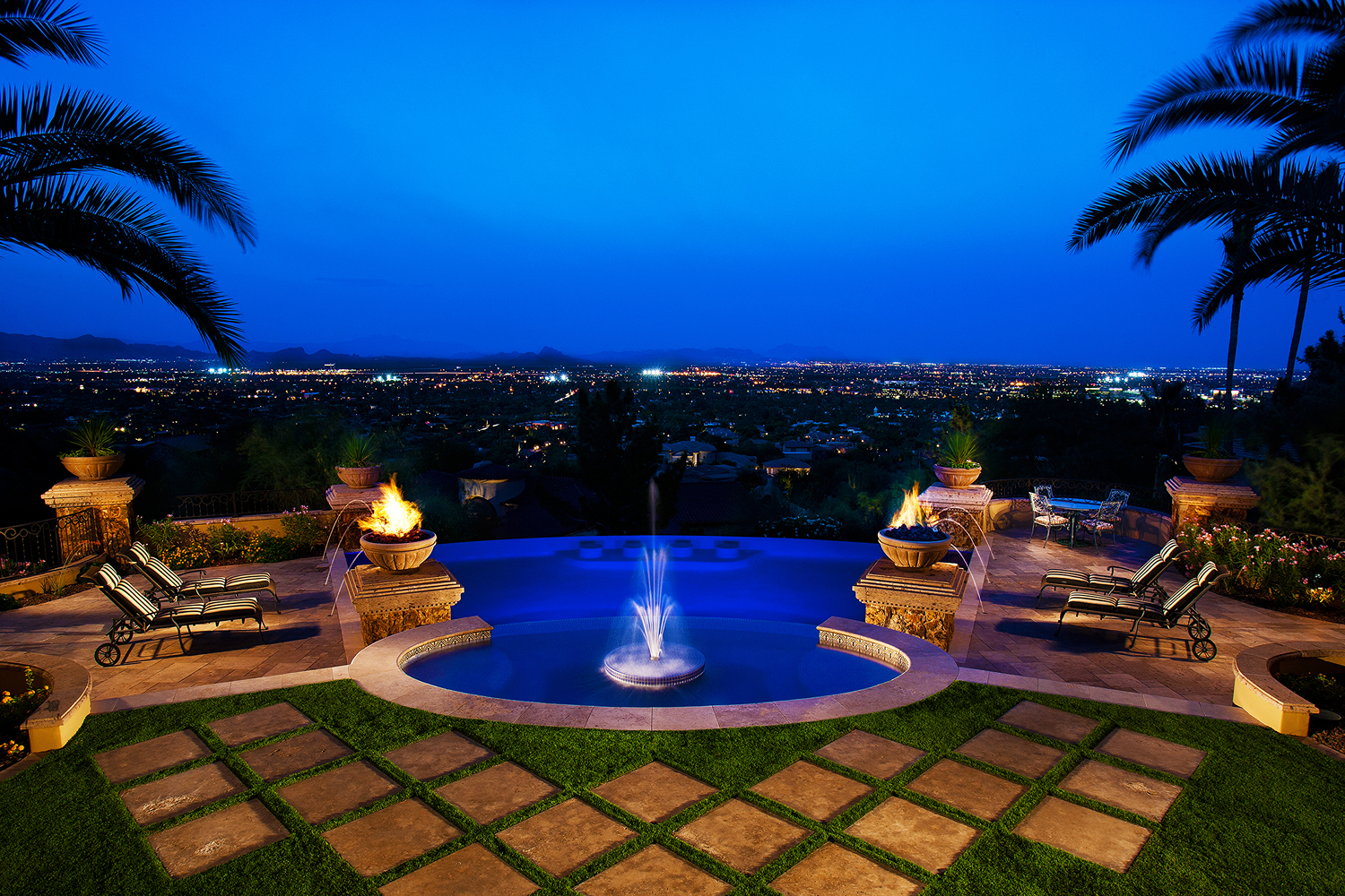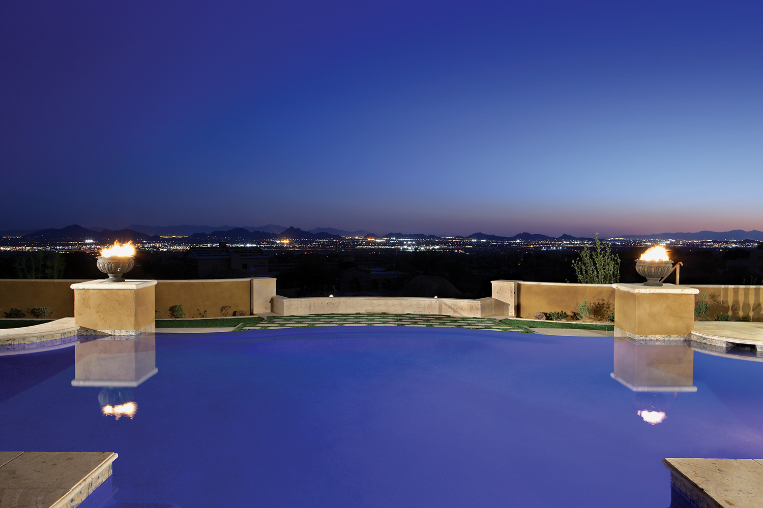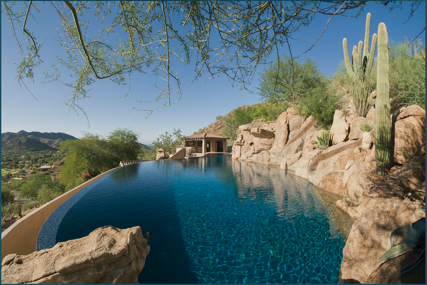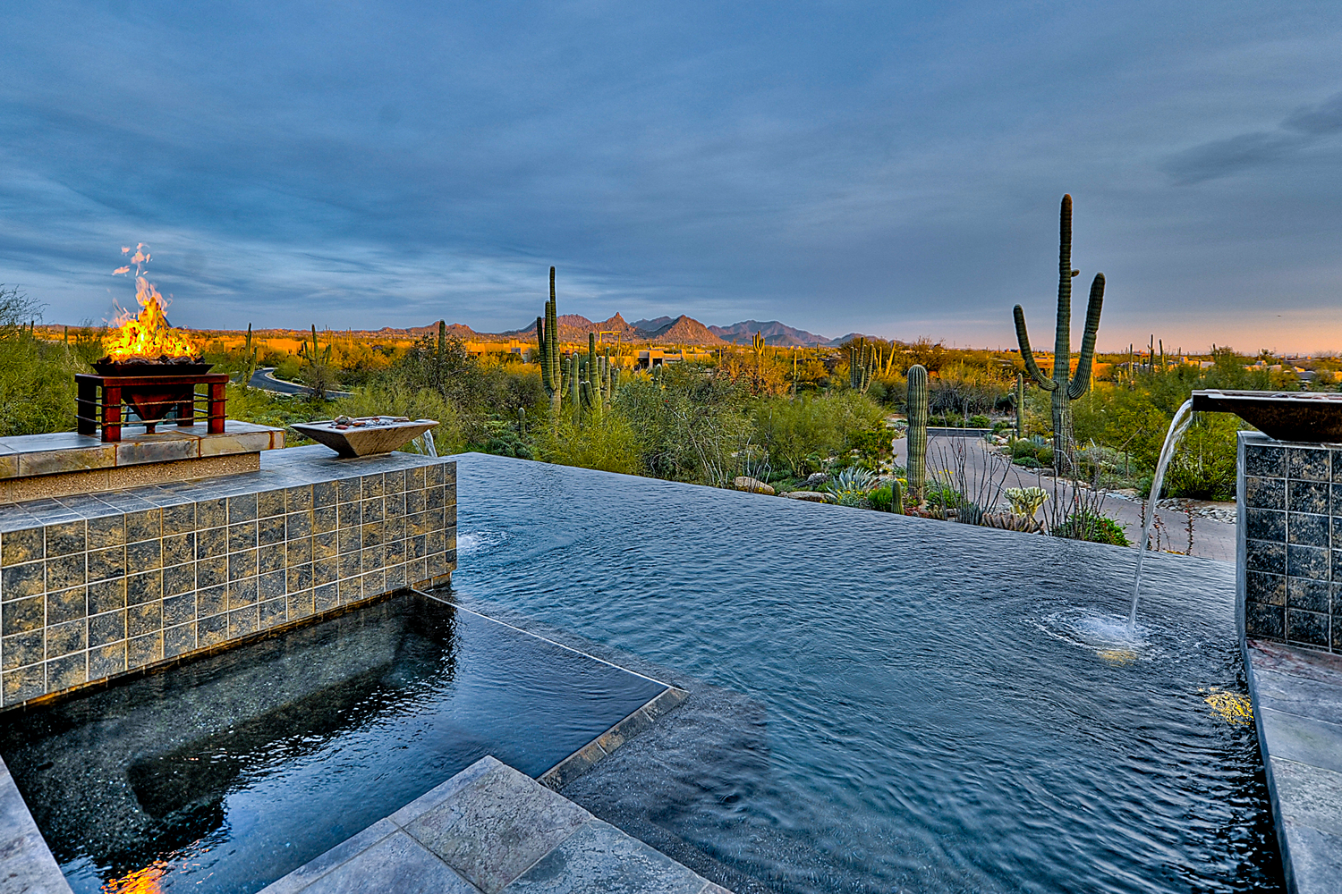 Projects featured: Silverleaf perimeter overflow masterpiece, Paradise Valley wet-edge with fire feature, North Scottsdale all-sides cascade, Arcadia contemporary wet-edge.Â