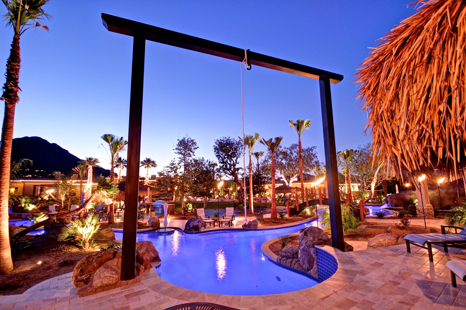 Projects featured: Silverleaf resort lagoon with waterfall, Paradise Valley beach-entry lagoon, North Scottsdale luxury resort-style design, Arcadia native landscape integration.