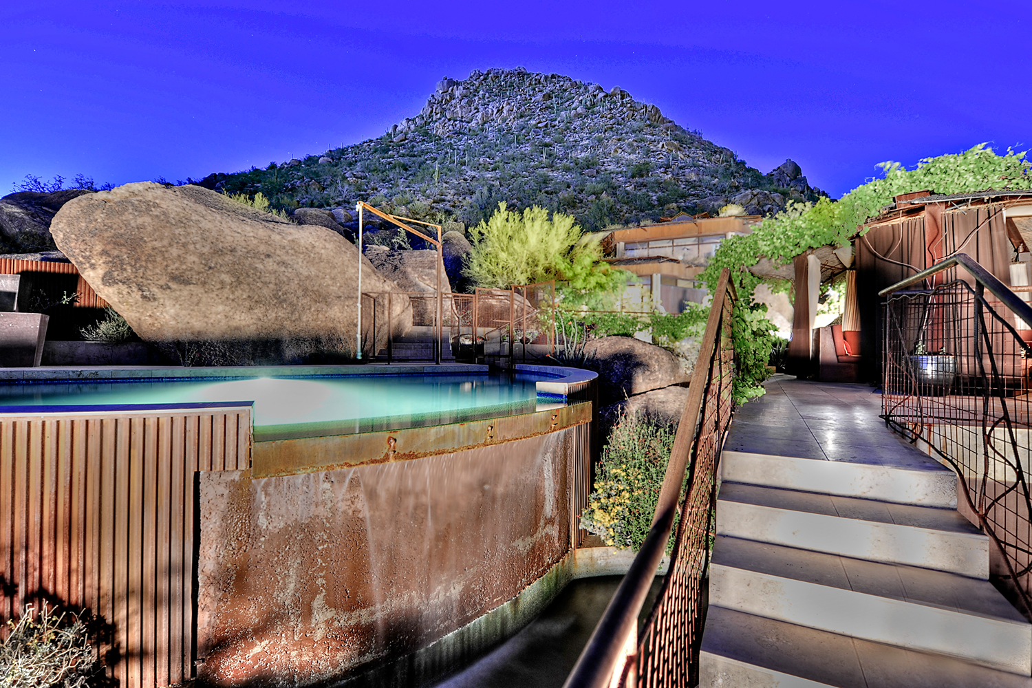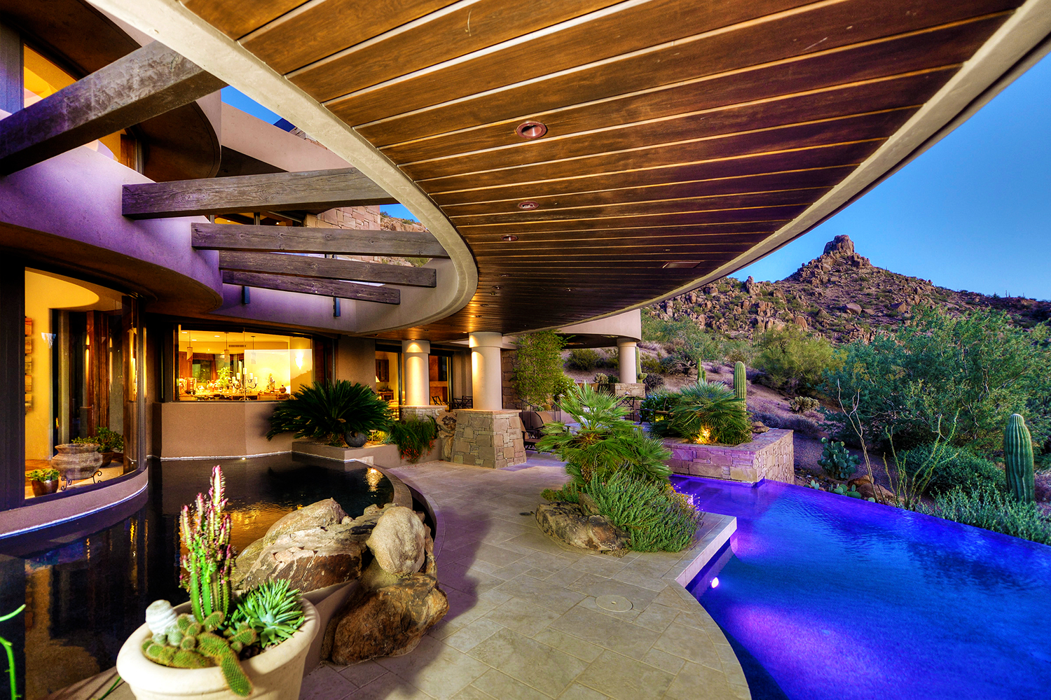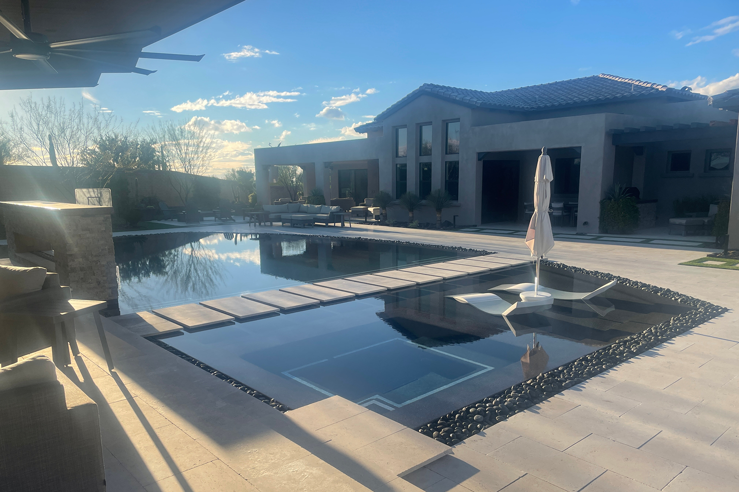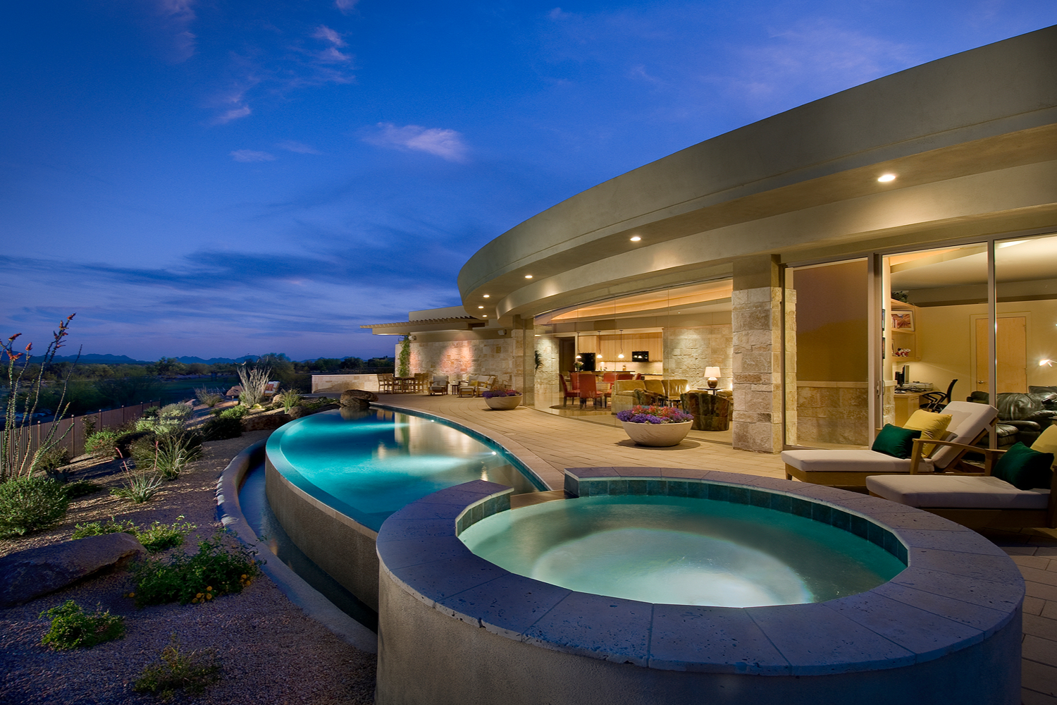 The best pools aren’t isolated features—they’re integrated into the overall landscape and outdoor living space. Native Arizona plants, hardscape materials, sight lines, and flow between indoor and outdoor space all matter.